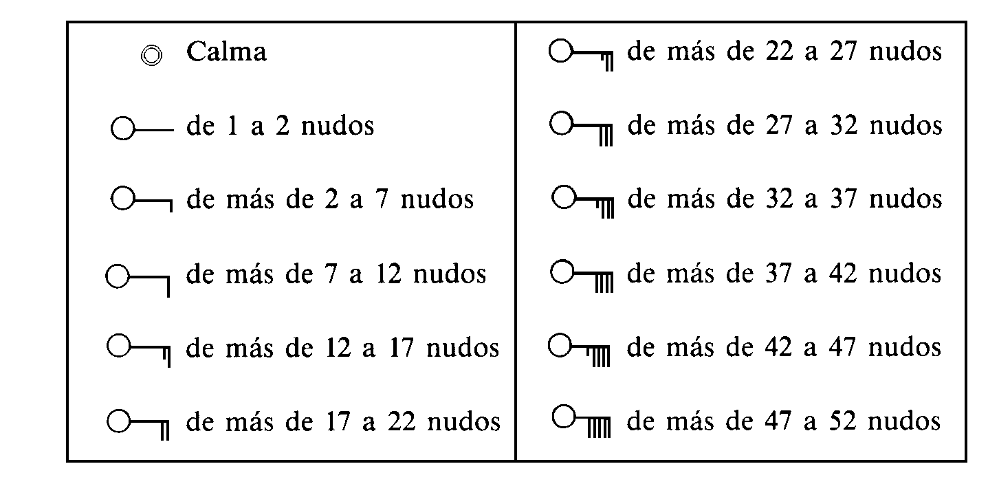 Símbolos de intensidad y dirección del viento